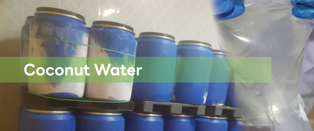 banner_coconutwater Coconut Water Pasteurized young coconut water Packing* Plastic bag LLDPE 2 kgs./bag* Plastic bag LLDPE 5 kgs./bagBrix* 6.5 -8 Brix (Depends on the season)Shelf life & Storage condition * 1 months at Frozen temperature